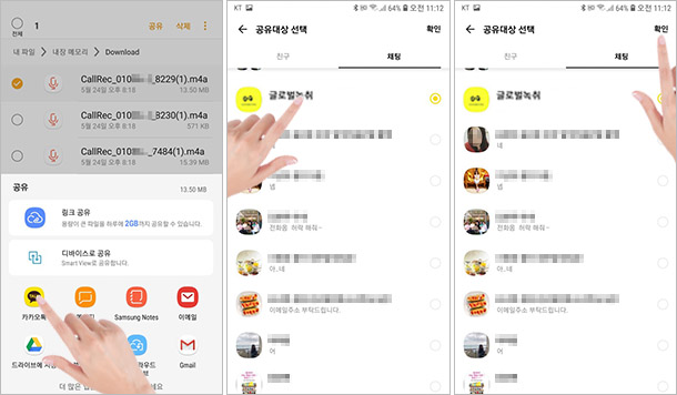 스마트폰에서 녹취파일을 전송하고자 하는 경우에는 아래를 참고하십시오.